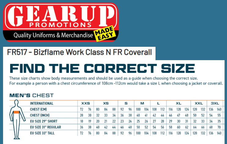 Size Chart Coming Soon.Contact Gearup for Size Information08 9303 9733