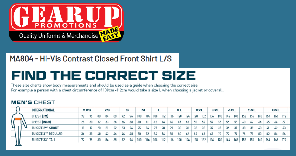 Size Chart Coming Soon.Contact Gearup for Size Information08 9303 9733