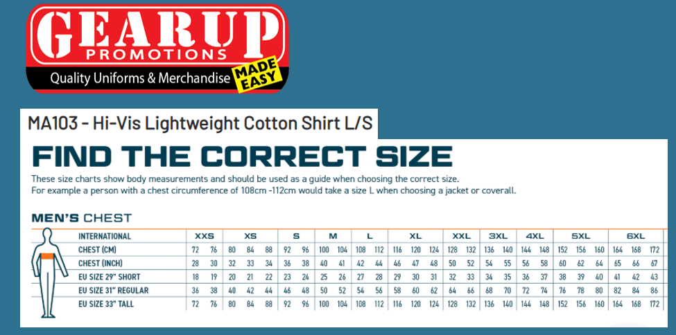 Size Chart Coming Soon.Contact Gearup for Size Information08 9303 9733