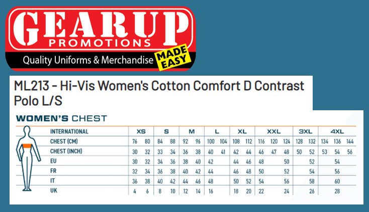 High cotton content for superior comfort.Hi-Visibility colour for visibility in daylight.Ribbed collar.Ribbed cuffs for added comfort.Designed with a comfortable fit.30 UPF rated fabric to block 97% of UV rays.New style.Women's specialised fit.0