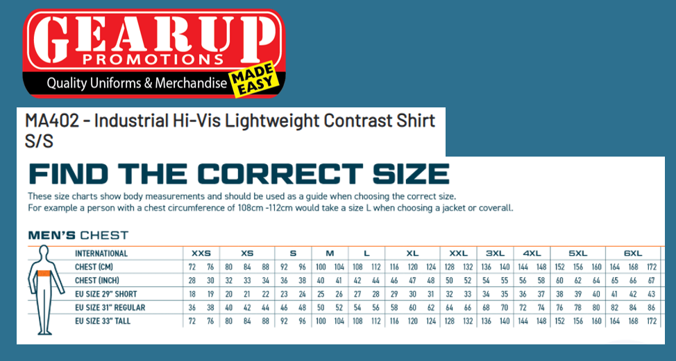 Size Chart Coming Soon.Contact Gearup for Size Information08 9303 9733