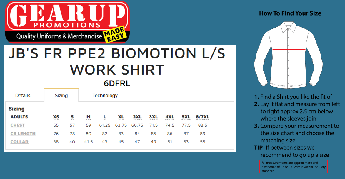 - Size Chart Coming Soon.Contact Gearup for Size Information08 9303 9733