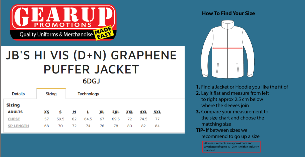 Size Chart Coming Soon.Contact Gearup for Size Information08 9303 9733