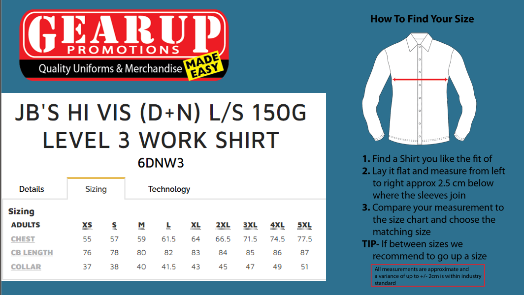 Size Chart Coming Soon.Contact Gearup for Size Information08 9303 9733