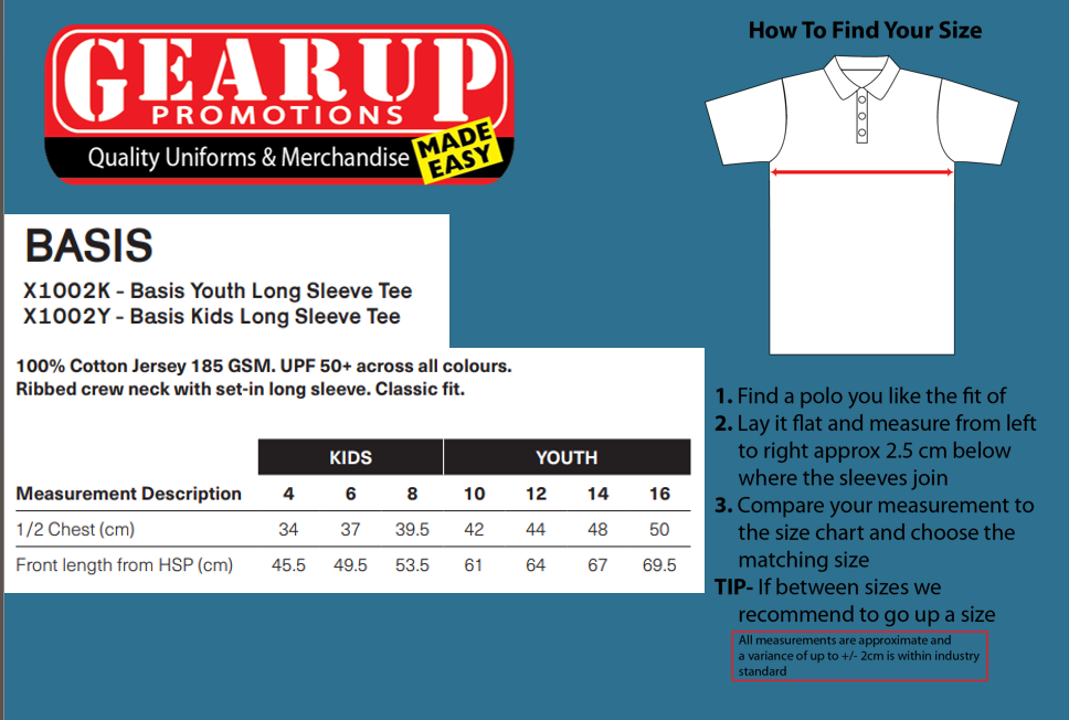 Features: Same solid fit, a bit more sleeve. The Basis Long Sleeve Tee is laidback comfort meets clean, classic design. Made with breathable 185gsm cotton and finished with ribbed cuffs and a set-in sleeve, it’s a staple that works with anything. Easy to style, easy to rely on. Your new cool-weather essential. Ribbed crew neck with set-in long sleeve. Fabric: 100% Cotton Combed Single Jersey 185gsm Cold machine wash. Wash with like colours.Do not bleach. Do not tumble dry. Line dry in shade. Low iron on reverse. Do not dry clean. Sizes: 4, 6, 8