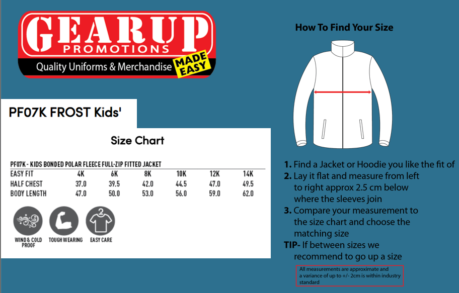 A black polar fleece jacket for kids with a full zip and zippered pockets, featuring a logo on the chest.