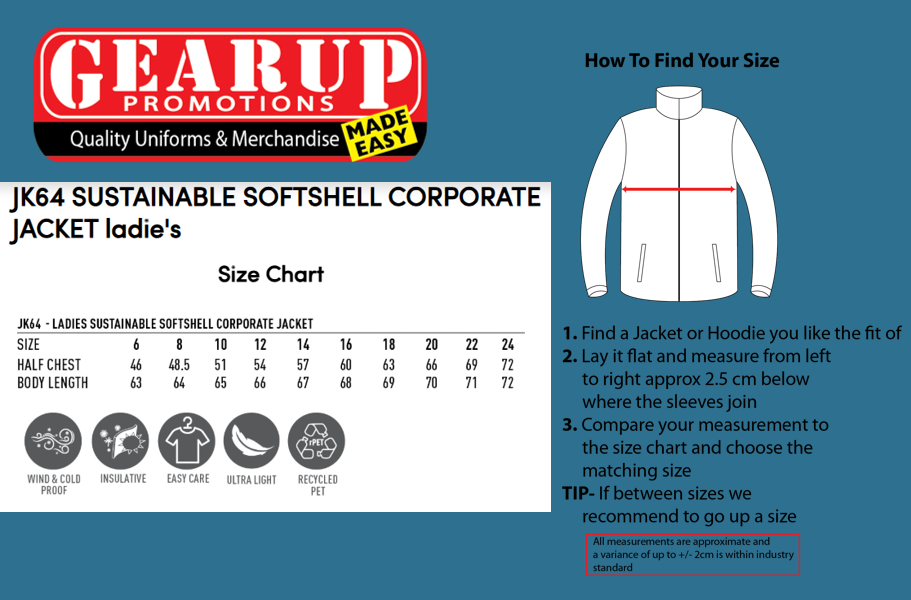 A black ladies' sustainable softshell corporate jacket with a zip front and side pockets, featuring a logo.