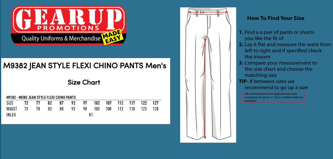 Men's flexi chino pants in navy blue, paired with a light pink shirt, standing in a kitchen setting.