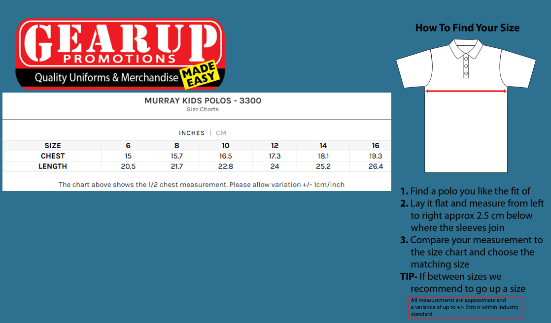 STYLE: 3300 Sizes: 6-16 Product Description: Where it all began. The Murray was one of our first designs when Aussie Pacific launched in 2009. Still one of our most consistent performers due to our mini waffle fabric that provides comfort and toughness in the same package. The vast number of customers who still use this polo as their uniform is a testament to the quality that Aussie Pacific has built a reputation on Fabric: 160gm 100% Polyester Features: Mini waffle knit Dri-wear antibacterial finish Easy care fabric Jacquard knitted collar with contrast stripes Contrast side body panel and curved sleeve panels Coloured highlight piping at all panels HI VIZONLY AVAILABLE IN AUSTRALIA