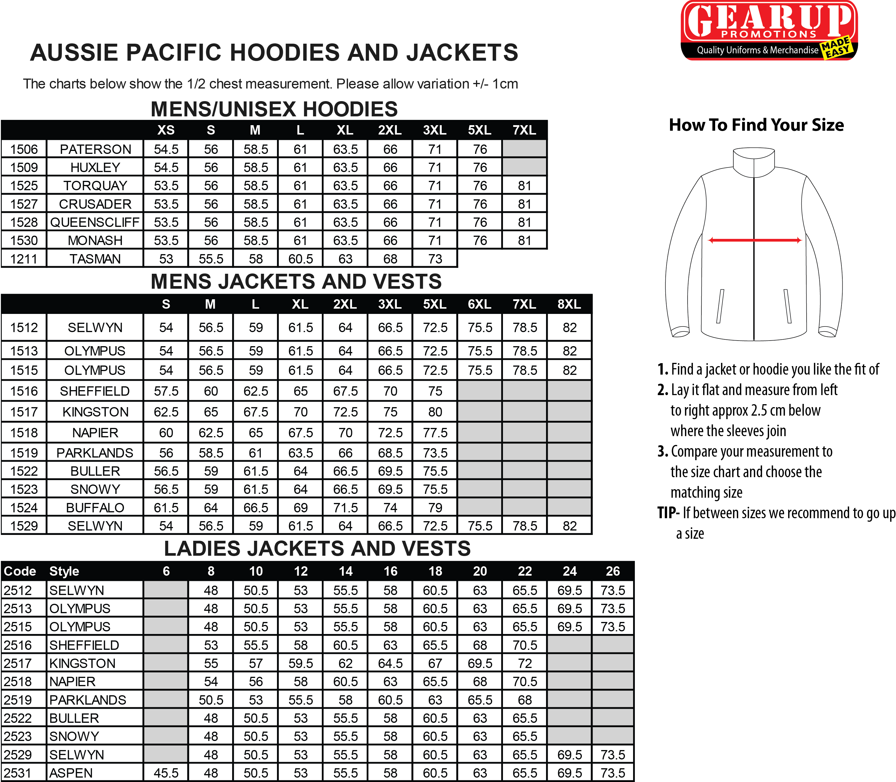 Style: 2515 Sizes: 8 - 22 Also available in 24 and 26 in Navy and Black ONLY Fabric: 320gm 3-layer performance softshell Outer 95% polyester 5% elastane Inner 100% polyester bonded fleece WP 3000 | BP 3000 Features: Light water repellent and wind resistant finish 2 side zip pockets and 1 chest zip pocket Shaped back tail for added warmth and modesty Tone on tone changeable zip pullers