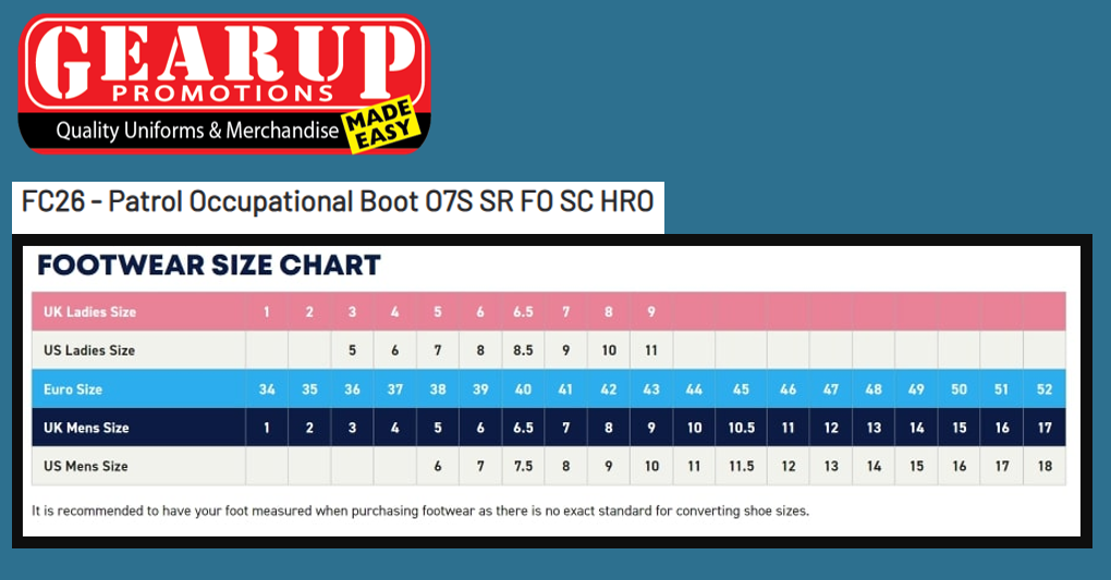 Size Chart Coming Soon.Contact Gearup for Size Information08 9303 9733