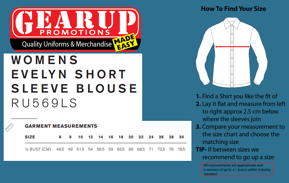 Features: Easy fit short sleeve blouse, designed to be relaxed through the body Elastic loop on front button detail Curved hemline, with longer back hem Long sleeve and button up blouse styles also available Mineral Blue coordinates with Biz Collection Memphis shirting range and City Polo range Fabric: 100% Recycled Polyester Sizes: 6 - 30